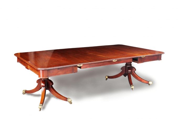 Regency twin pillar mahogany dining table