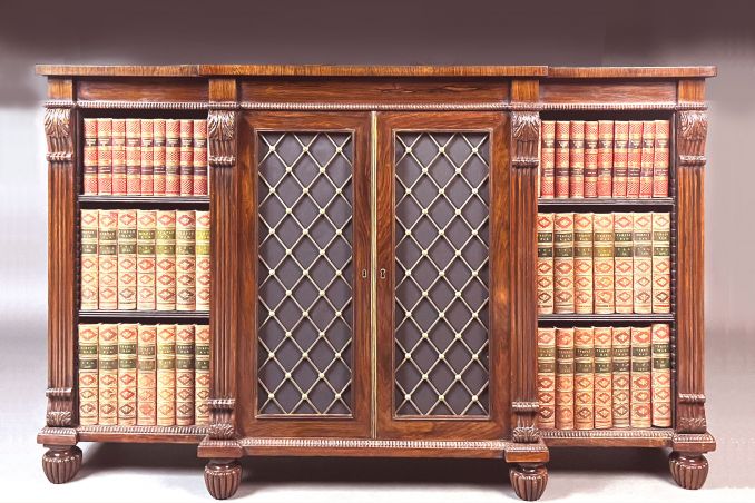 Small satinwood breakfront bookcase