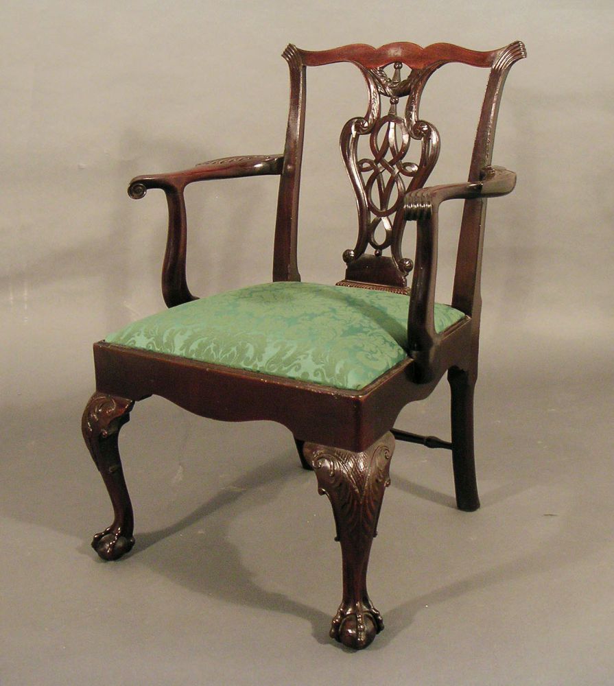 Mid 18th Century Chippendale period mahogany cabriole leg elbow chair with good crisp carving; probably Irish