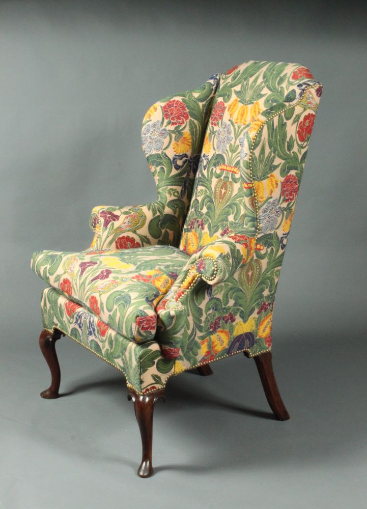 A large early 18th century walnut cabriole leg wing chair : particularly good shape