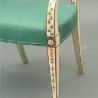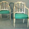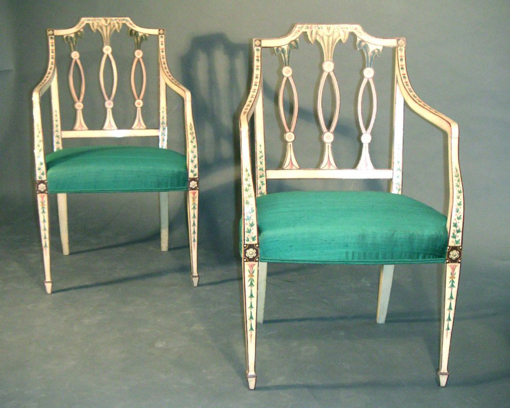 A fine pair of painted George III Sheraton period armchairs, Prince of Wales feathers and flowers on an ivory ground. Very minor retouching to the paint.
