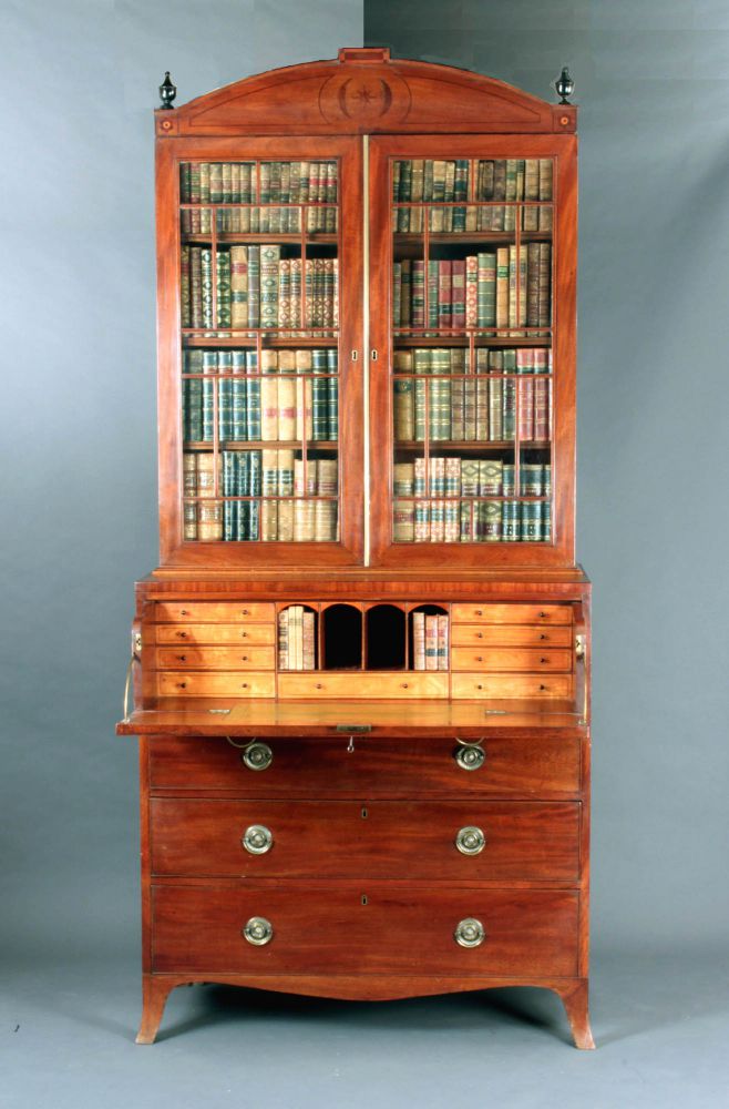 Antique Sheraton mahogany secretaire bookcase