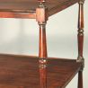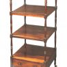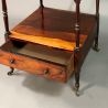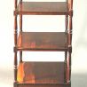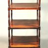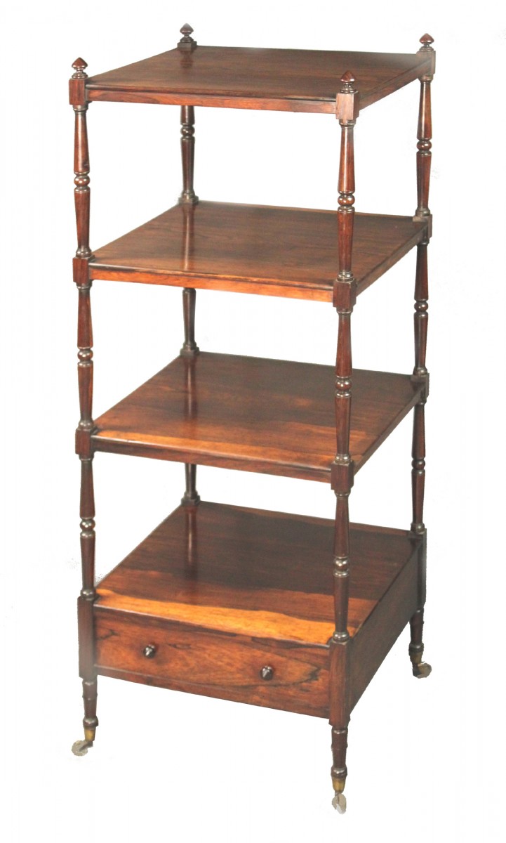 Regency four-tier whatnot; elegant turned pillars surmounted by small finials; lovely variegated rosewood and a single drawer at the bottom; fine original condition