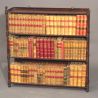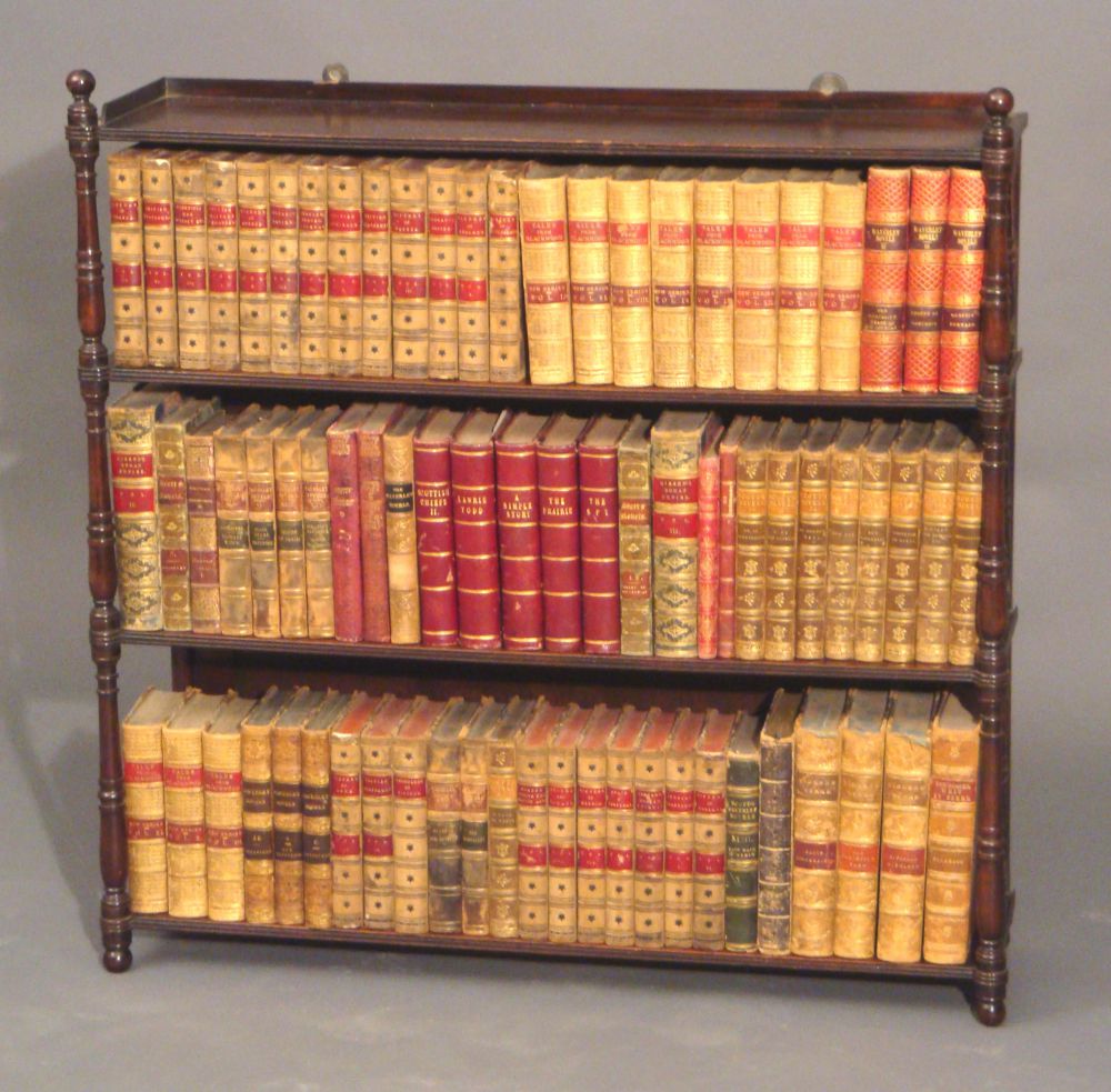 A set of Late George III mahogany wall shelves with slim turned pillars and panelled back