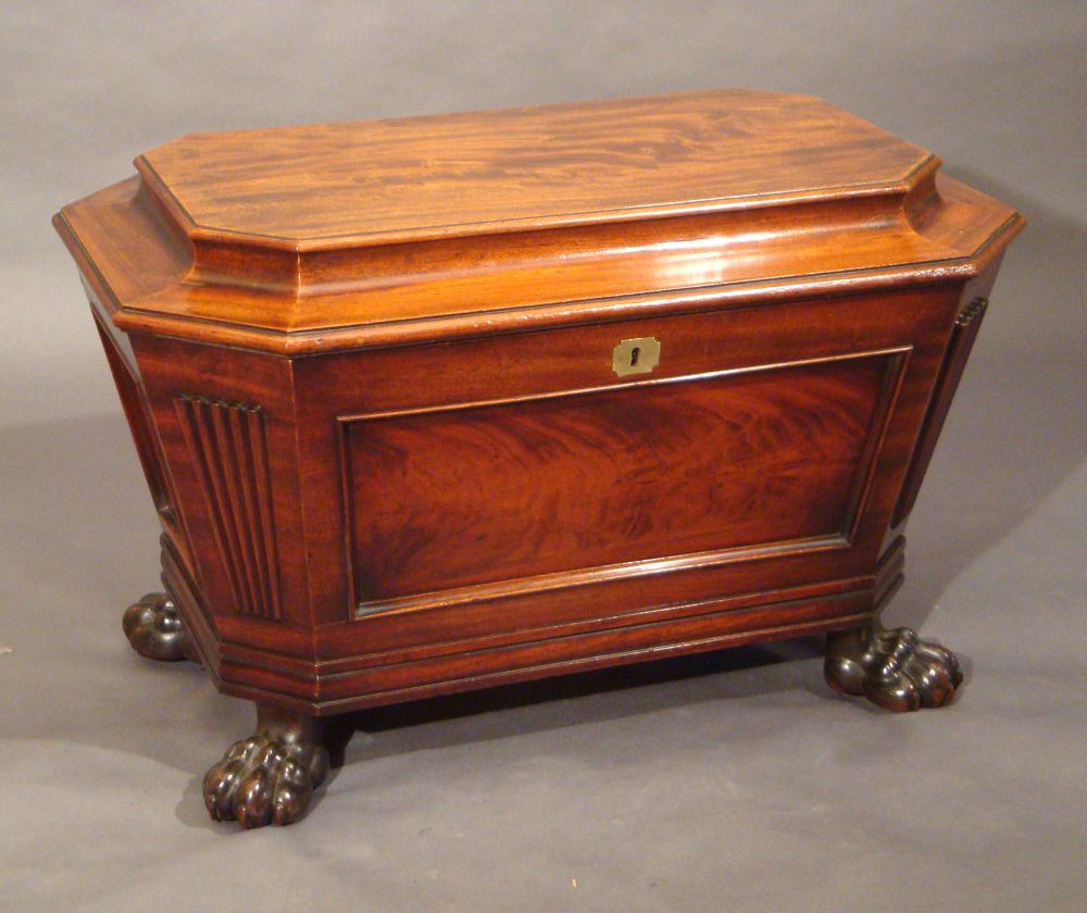 A Regency sarcophagus wine cooler on carved paw feet; in well figured mahogany