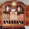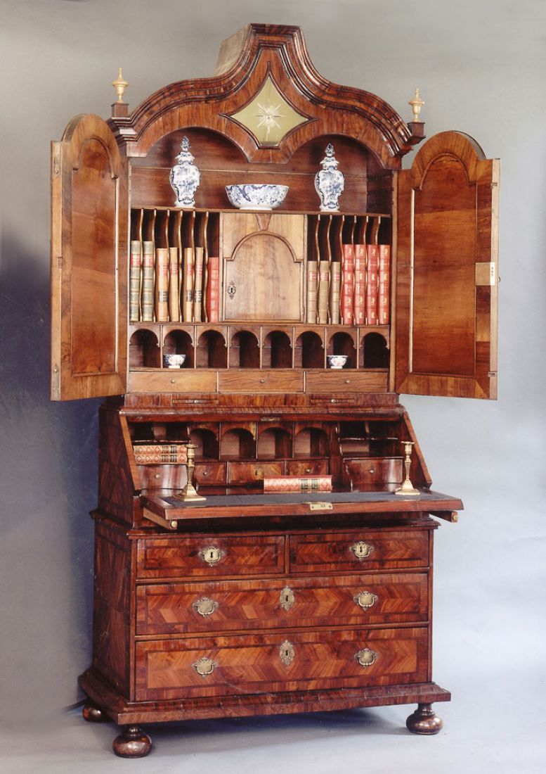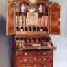 C049  Superb mirror door Continental bureau bookcase in the English manner in a rare exotic timber; well fitted interior with secret drawers, candle slides below the mirrors