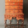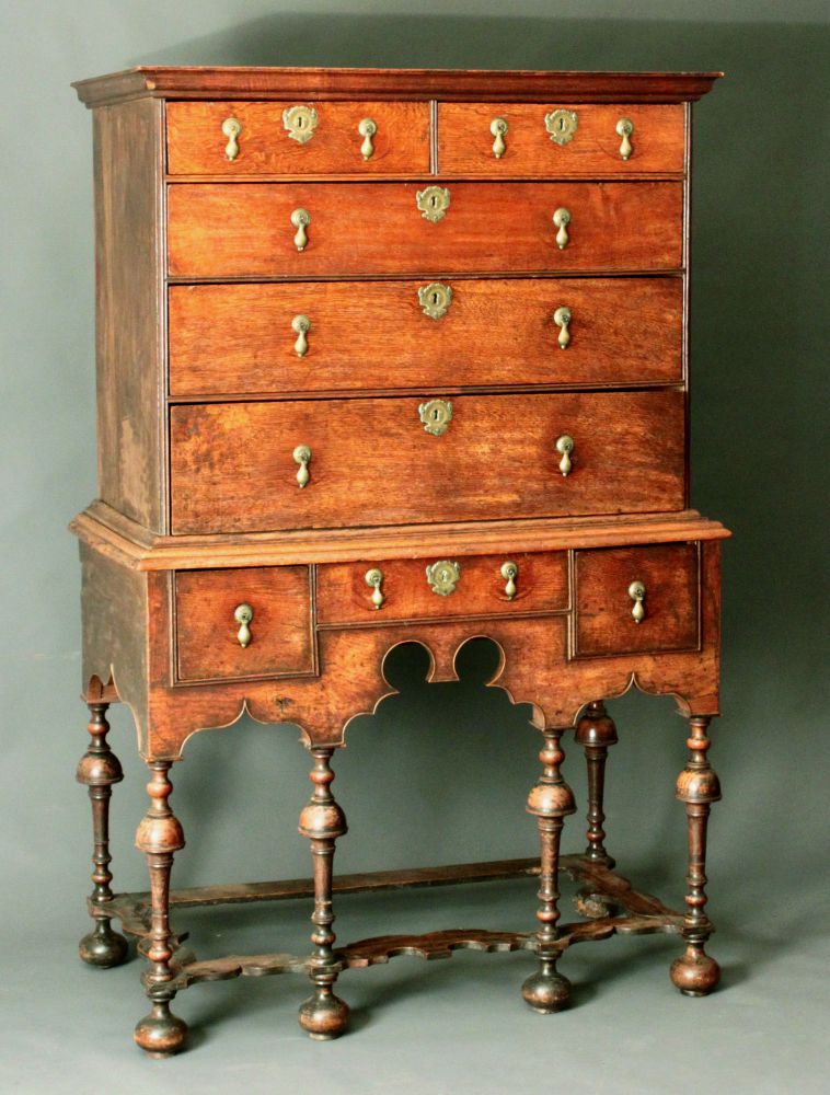 An attractive early Queen Anne oak chest on stand in remarkably original condition: notably the bun feet and handles are original as is the colour and patina