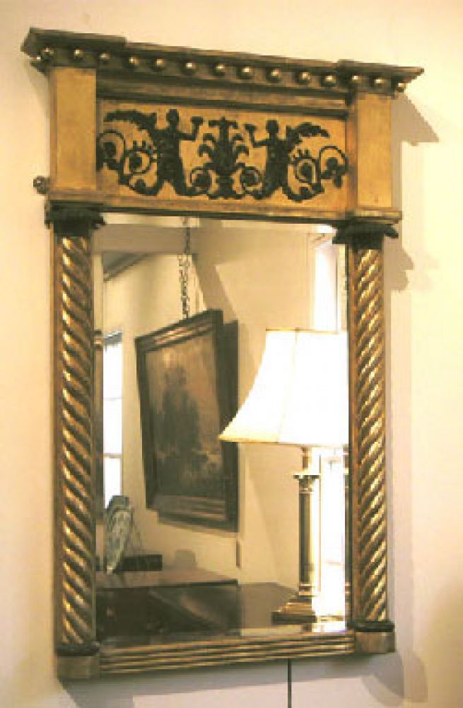 Small Regency pier glass with twisted pilasters and a frieze of classical figures