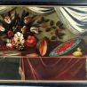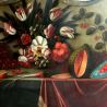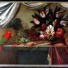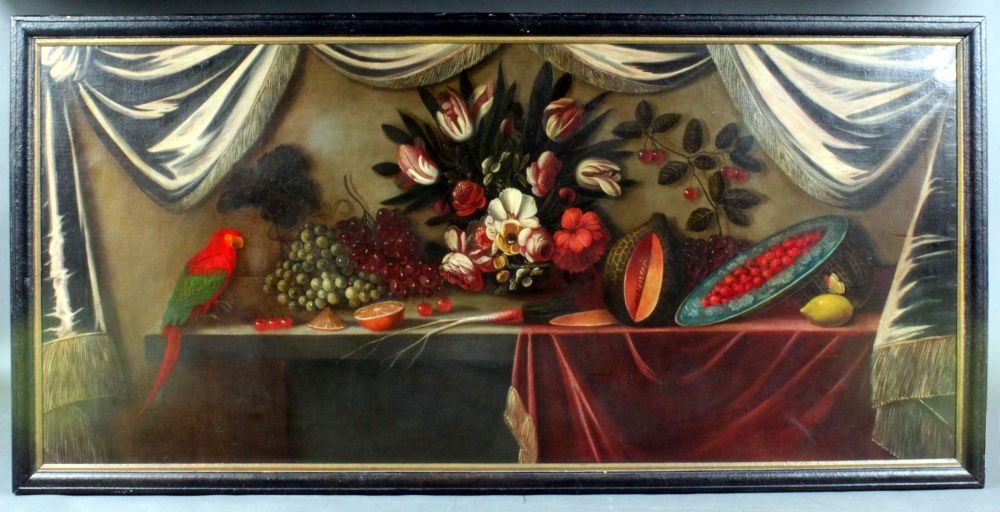 A large Continental still life of a parrot with fruit; oil on canvas c. 1750