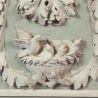 All the detail is in carved wood, not gesso and certainly carried out by a master carver; the fruitwood and birds have good depth but we particularly admire the fluidity of the scrolling foliage of leaves and flowers.