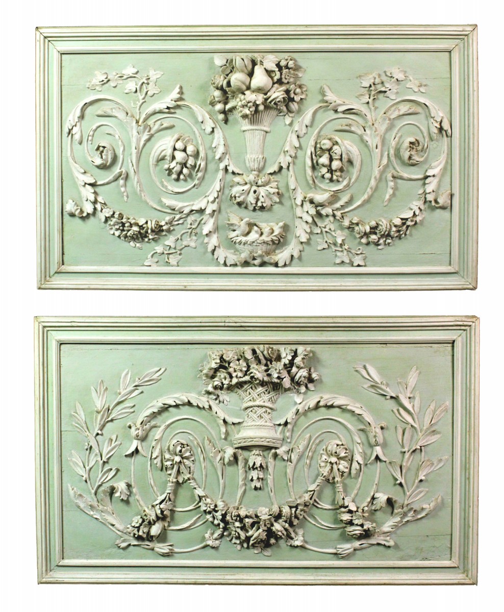 An attractive pair of French Louis XVI style carved wood panels.  Possibly overdoors.