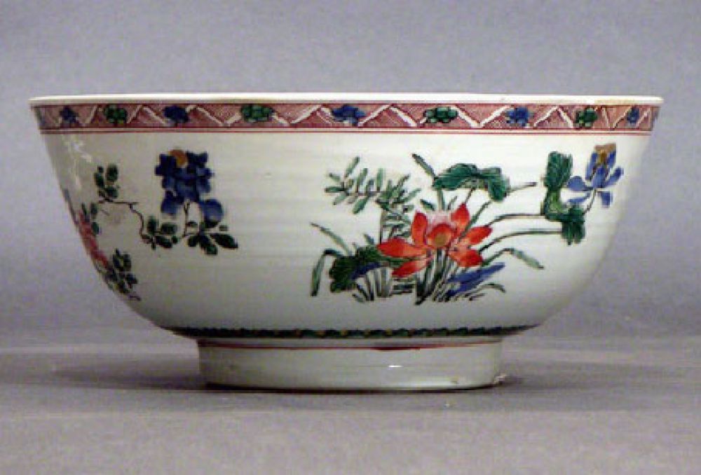 244B Kang Hsi famille verte bowl with fine floral painting and a blue seal mark (minor rim chips repaired) c.1700