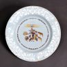 An English delft dish with a central chinoiserie scene in manganese, yellow and blue with an effective bianco sopra bianco border, probably Bristol, Redcliff Back; some small rim chips