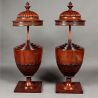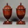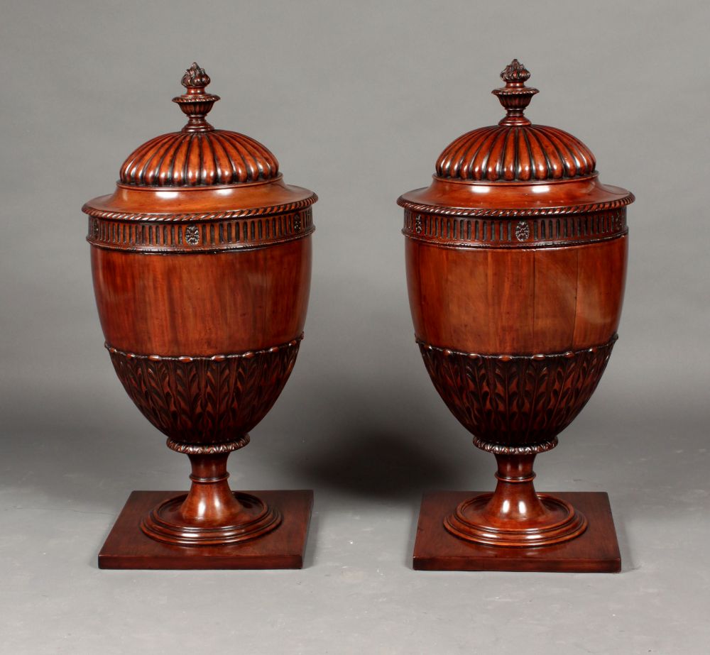 An impressive pair of George III style mahogany knife urns with finely carved detail. Probably made in the first half of the nineteenth century.