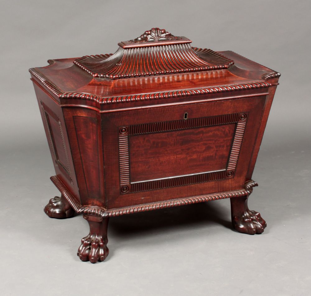 An exceptional Regency mahogany wine cooler with its original colour and patina; unusually the back finished to the same quality as the front and sides