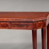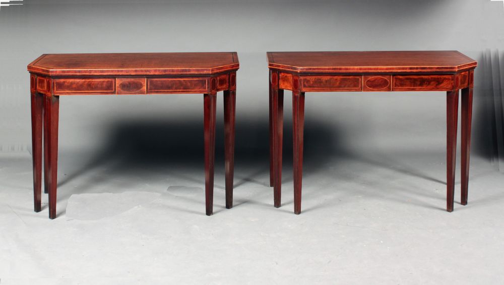 A good pair of George III Sheraton tea tables in fiddle grain mahogany