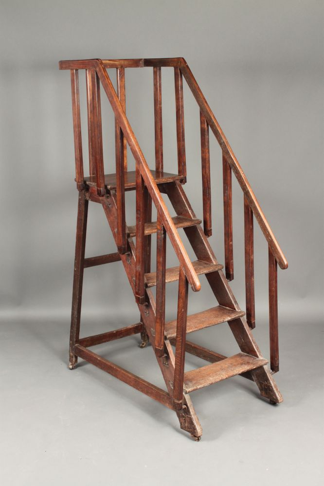 A set of 19th century oak library steps with old steel fittings