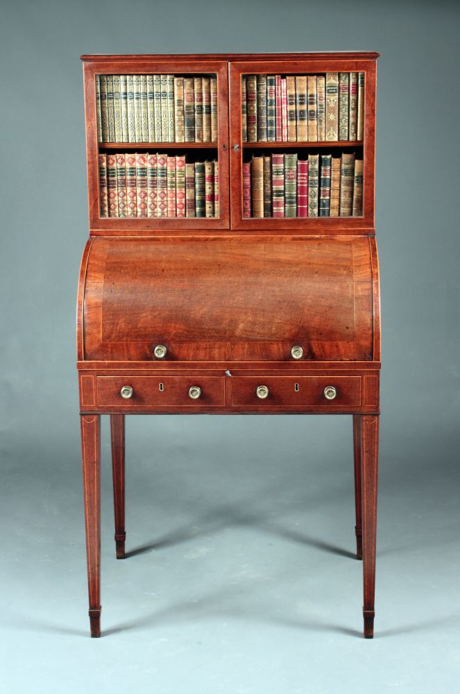 Antique George III cylinder bookcase in fiddle grain mahogany of a good colour and patina
