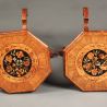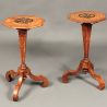 Antique pair of small walnut marquetry tables