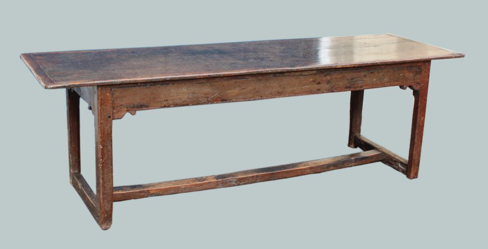A good early 18th century farmhouse table in oak and walnut; good original colour and patina