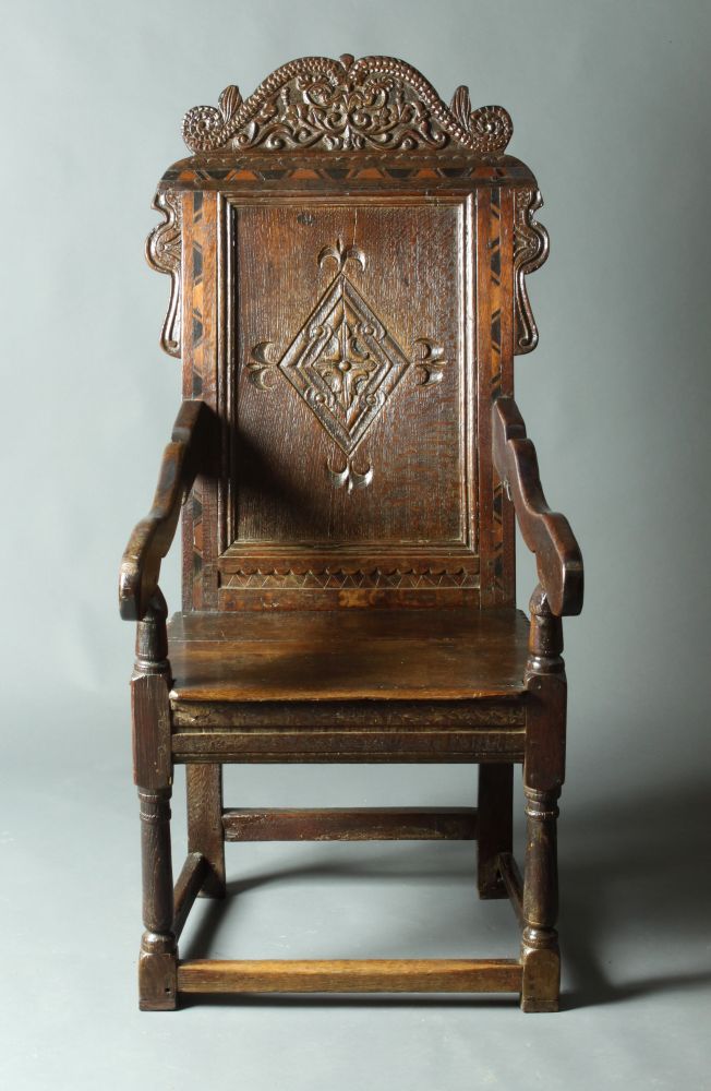 A late 17th Century Leeds, Yorkshire oak wainscot chair of a good colour and patina: the original seat;  feet extended by 3/4 of an inch.