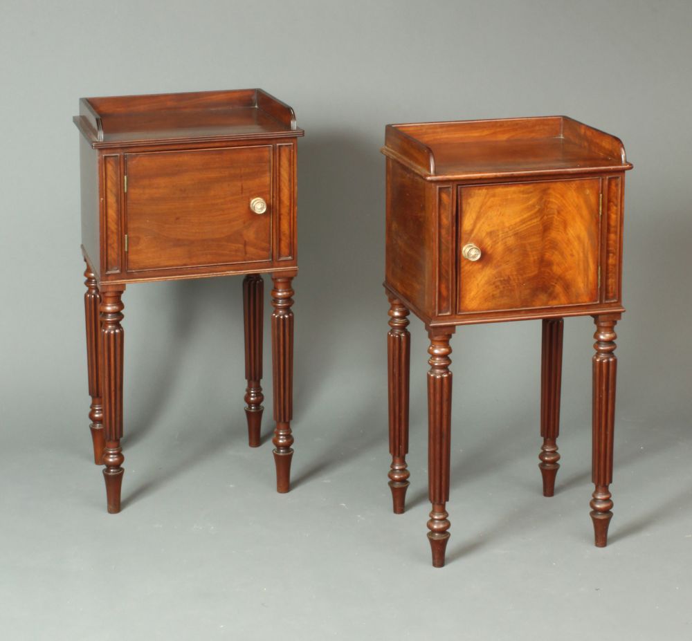 A near pair of Regency mahogany pot cupboards attributed to Gillows of Lancaster; slight differences in size and just one with a reeded gallery