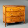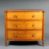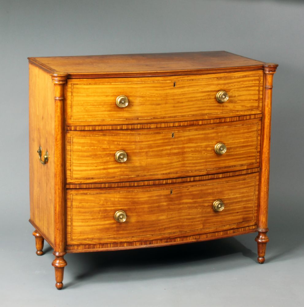 A rare George III three-drawer satinwood commode with kingwood cross-banding; attributed to Gillows of Lancaster - this attribution based on fig. 115, Gillow Furniture designs 1760-1800 showing a chest with similar projecting front pillars and peg feet