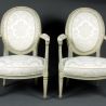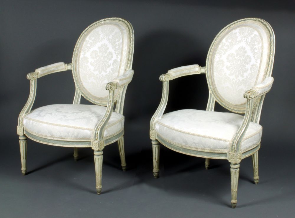 A good set of four French painted chairs made in the Louis XVI style probably in Alsace in the 1830s. They have been reupholstered in Paris recently. The paintwork is original and they are a large, generous model