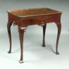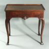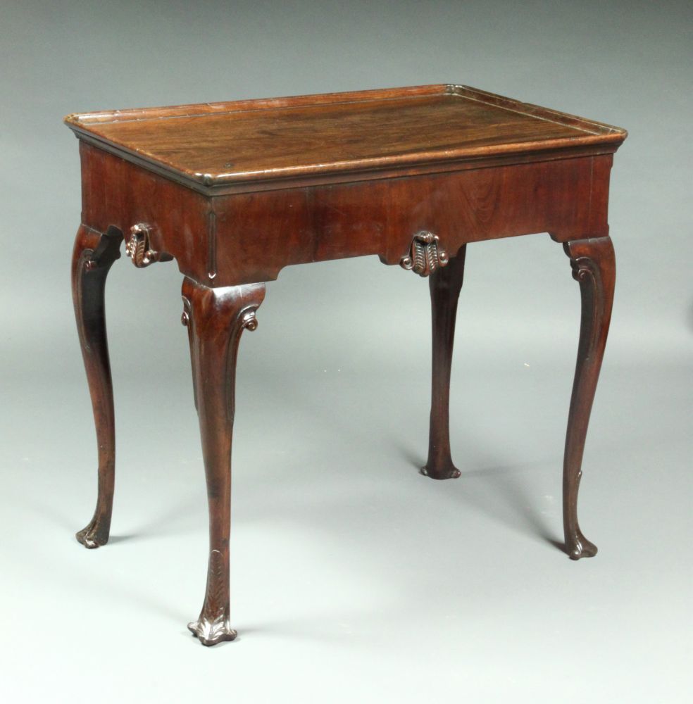 A fine mid 18th Century Irish silver table in mahogany of a good colour and patina; each side with a vertically veneered frieze and a carved centre motif, the feet also have a similar carved decoration.