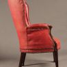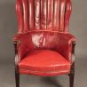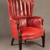 A mid nineteenth century mahogany barrel back wing chair in old red leather: stylistically late eighteenth century.  Large and very comfortable.