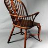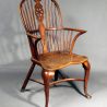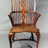 A late 18th century yew wood cabriole leg windsor chair with crinoline stretcher