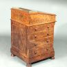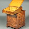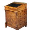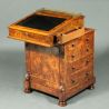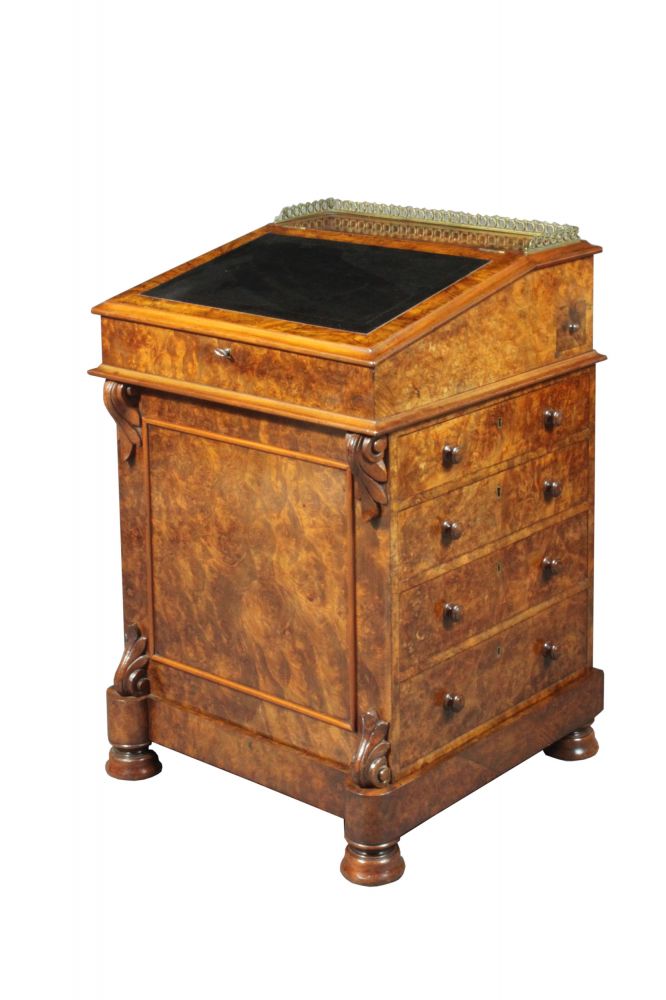 A fine early Victorian Davenport in burr walnut of good colour and patina, with fitted interior in bird's eye maple; ink drawer and drawers on the right side and false drawers on the left; the drawers with VR locks, good panelled back