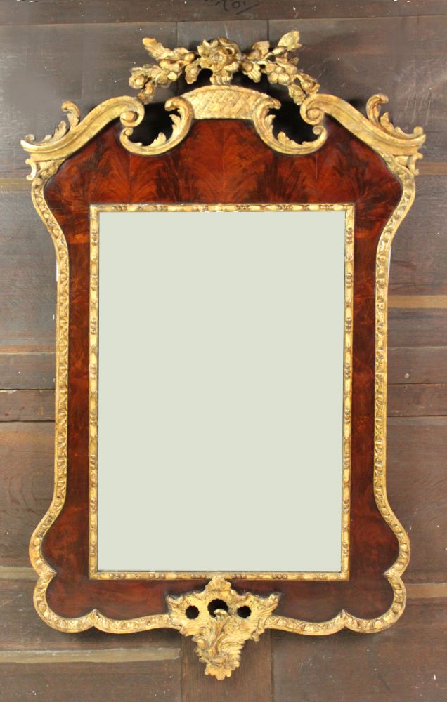 A good late 18th century mahogany and parcel gilt mirror with fine carved detail and original gilt. Possibly Northern European.