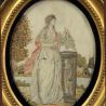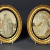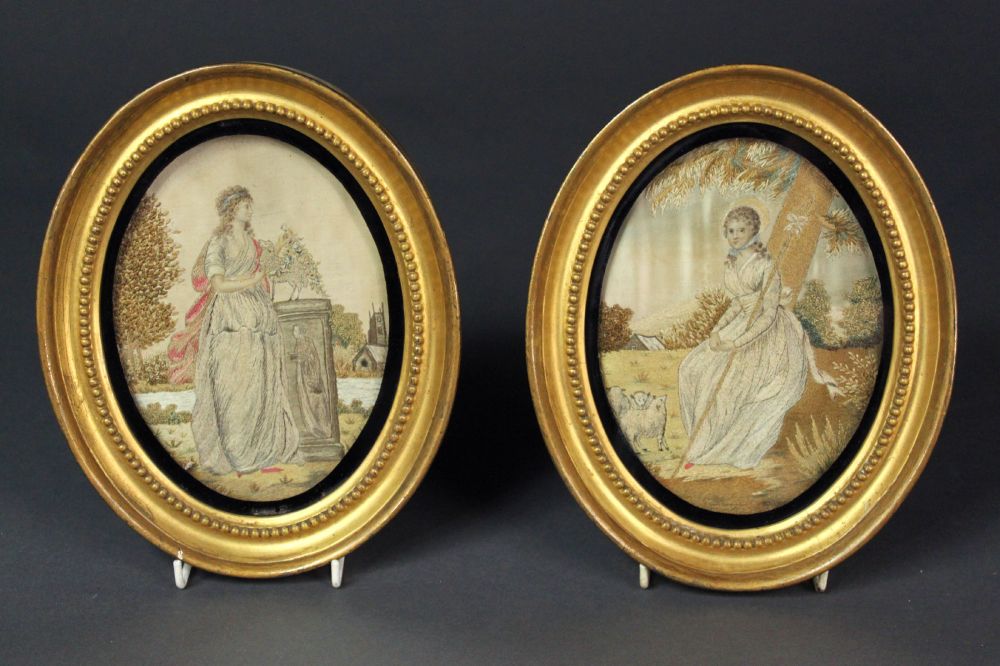 Pair of oval silk needleworks worked by Martha Lansdown from the Box School, Wiltshire. One done in 1795 and the other in 1796; both are dated on the back
