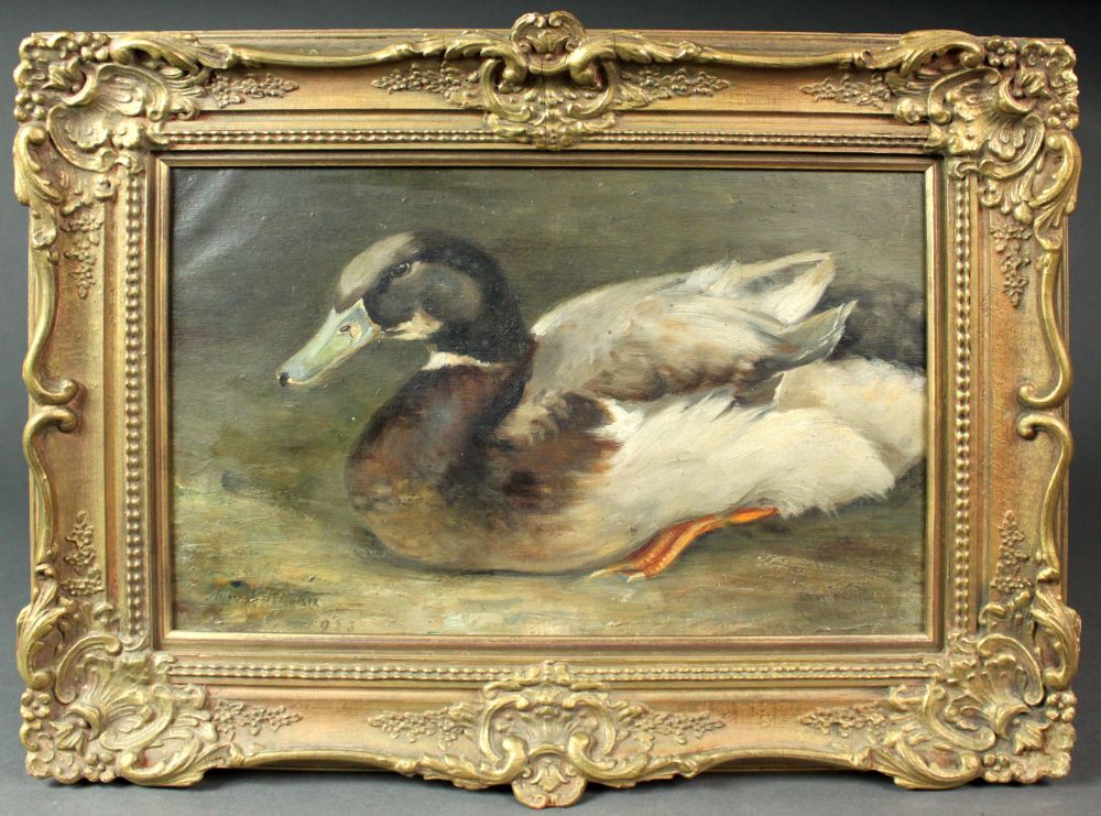 A charming original oil painting of a duck signed by H K Ritchie and dated 1923