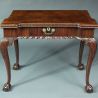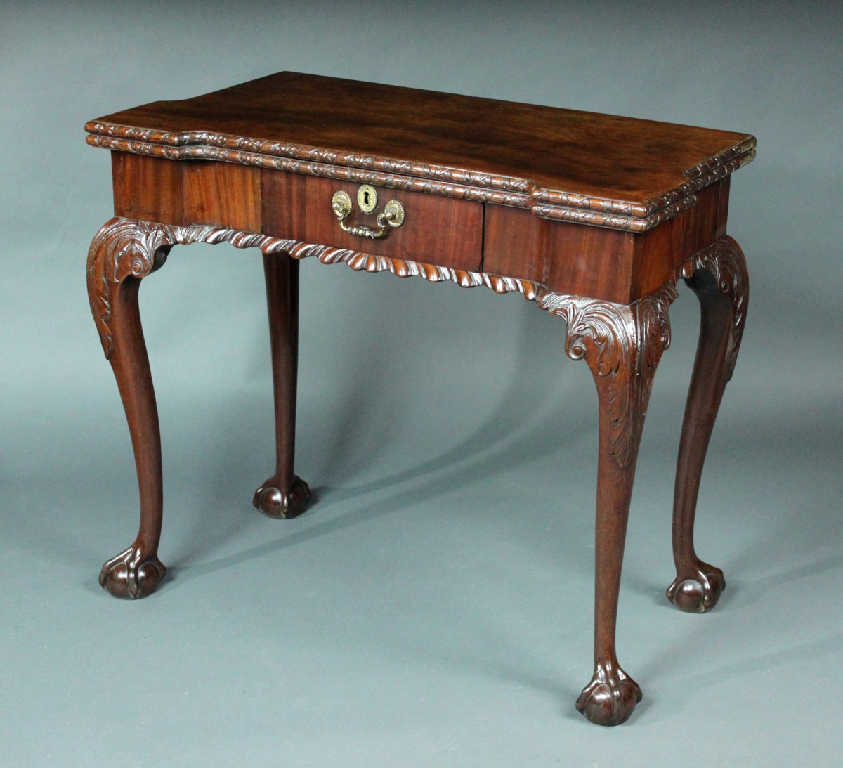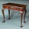 A George III mahogany cabriole leg card table with exceptional carved detail and rare small size.  Secret drawer and good original colour and patina.