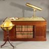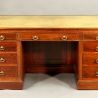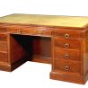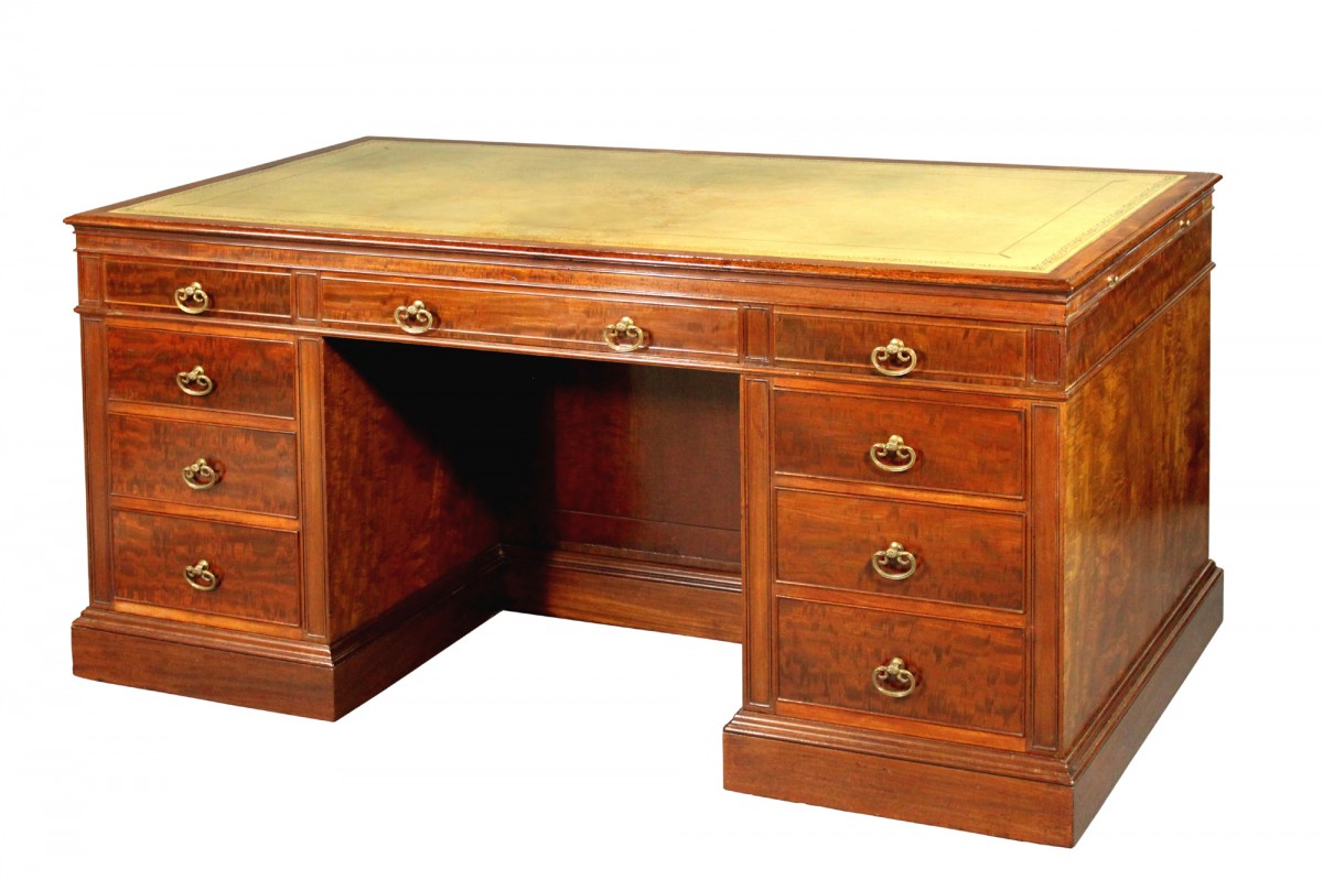 An exceptional mid-nineteenth century pedestal desk in figured mahogany; the front with blind pilasters and the mahogany lined drawers hung with fine cast loop handles; the top fitted with slides; the back with cupboards and bookshelves; dismantles into several sections. The desk has plenty of room in the kneehole and is comfortable to sit at.
