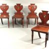 A good set of Regency hall chairs by Williams & Gibton of Dublin; in mahogany of the original colour and patina; well carved backs and turned front legs.