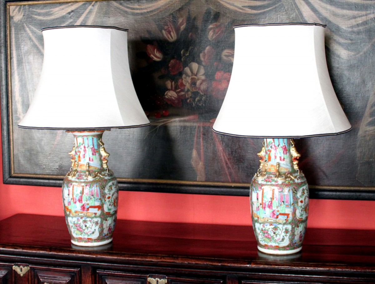 A good large pair of Chinese Canton vases converted into lamps (with damage and restoration)
