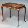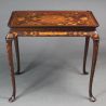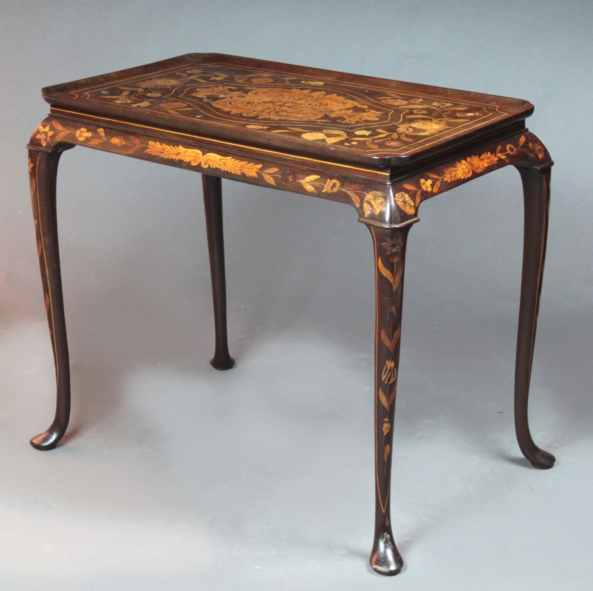 An attractive Dutch margetry silver table with a slim elegant cabriole leg; the marquetry is inlaid into solid mahogany. The table is 18th Century and, as is usual with Dutch furniture, the marquetry was added in the mid 19th Century.