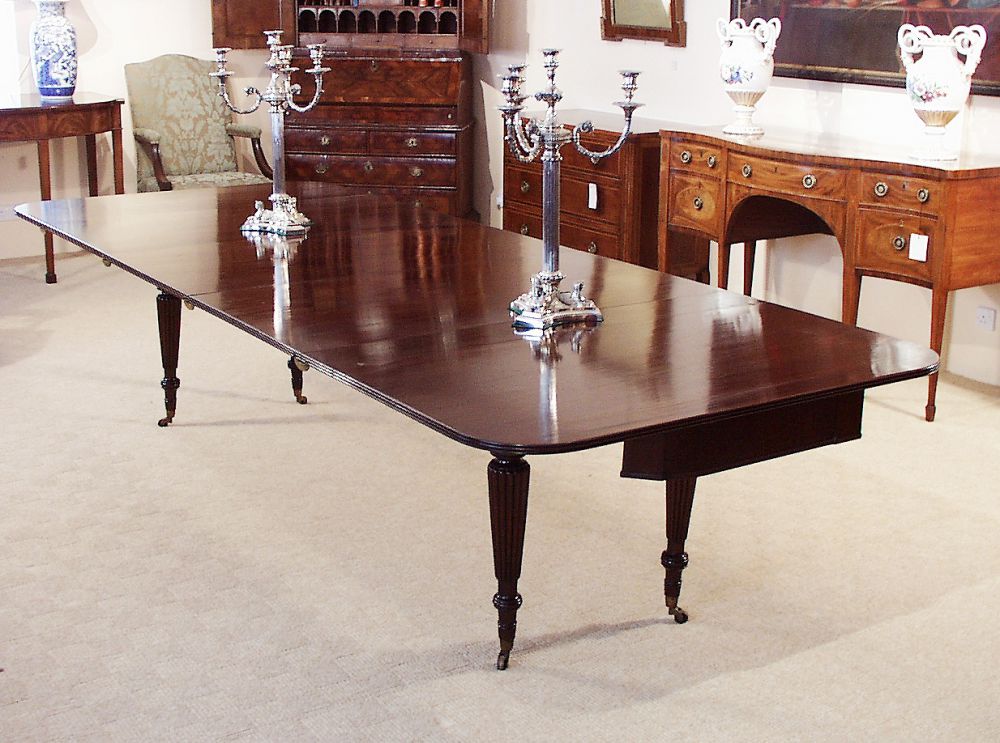 A Regency mahogany  Stewart Patent dining table: closes to form a D shaped side table; the legs unscrew for ease of transport; brass maker’s plate on the action