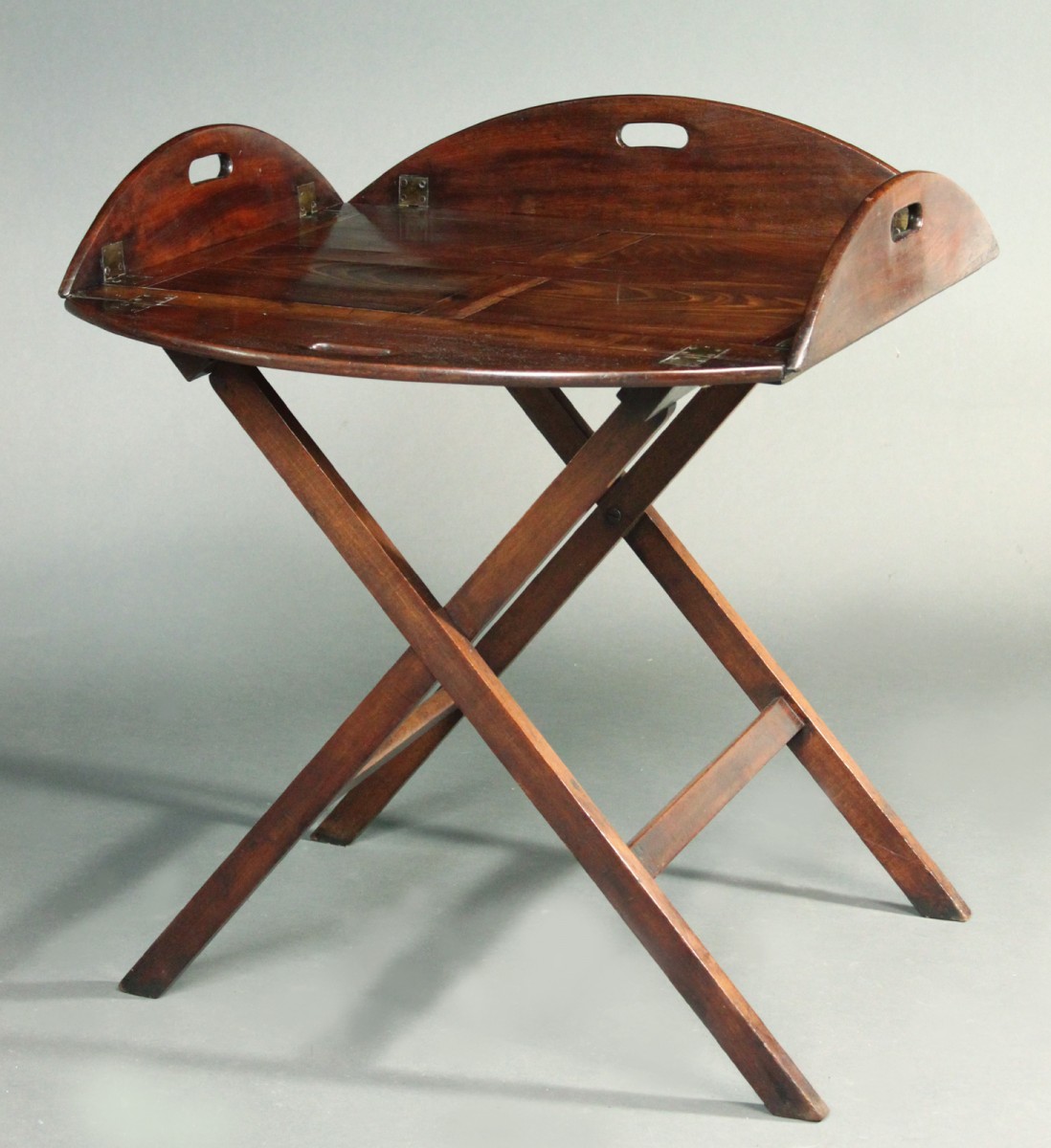 George III mahogany folding butlers tray on stand with a good original colour and patina.