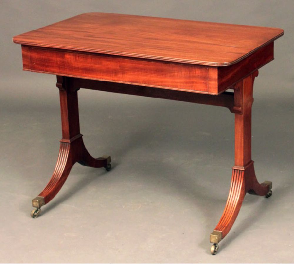 A George III  mahogany standard-end sofa / writing table on reeded legs