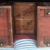 The photographs of the back have the key in the centre drawer, the fronts with the key in the right-hand drawer.