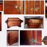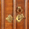 The cornice has fine quality applied fretwork, the doors are counter-veneered in figured mahogany and with well-made locks and hinges; the old rococo gilt brass handles are not original but appear to have been with the cabinet for some considerable time. The top drawer has old baize inside and there are large wooden castors underneath the cabinet to make pulling it out easier. The dove-tailed drawers have oak linings and the backboards are also in oak.