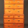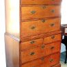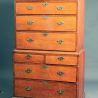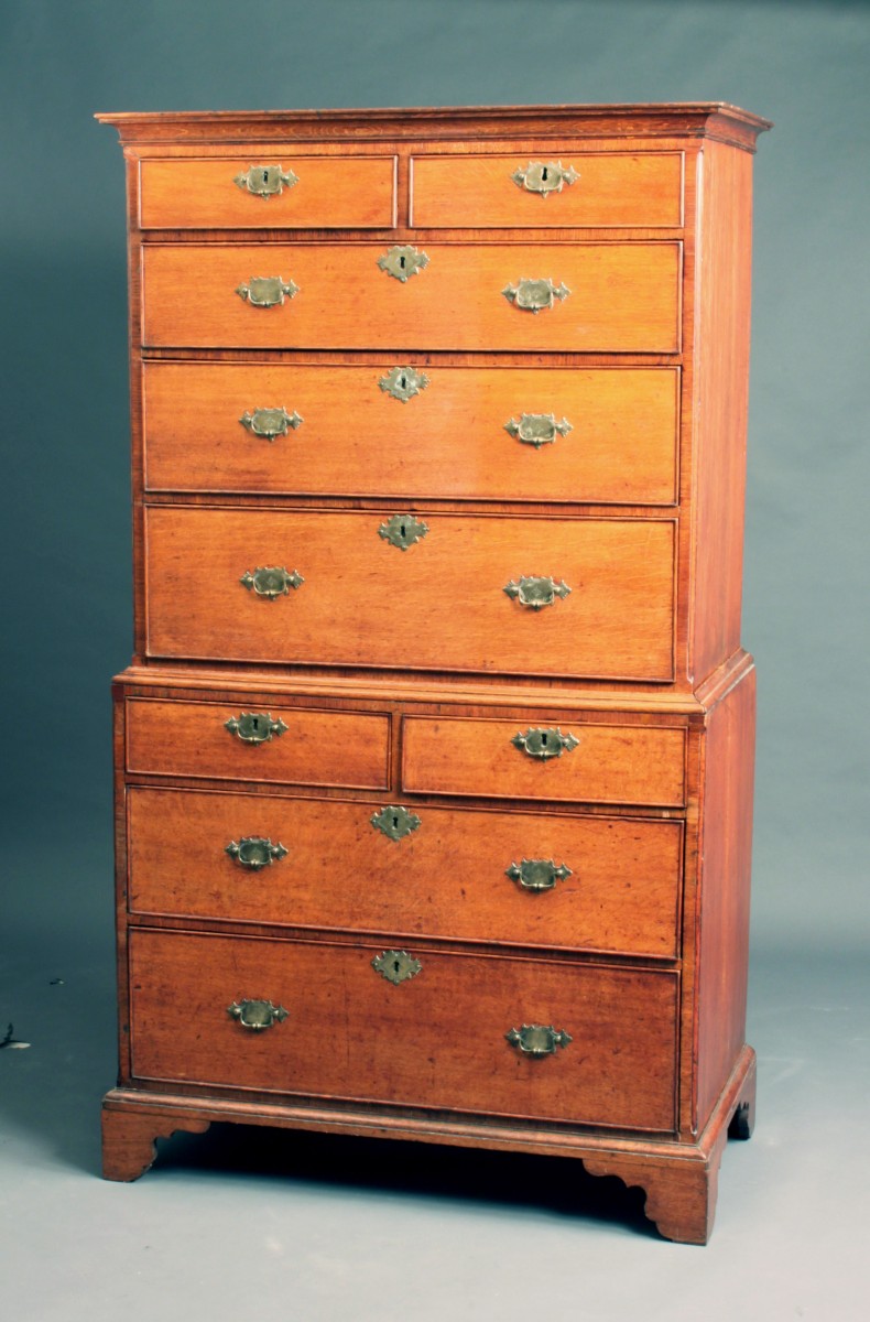 An unusual Queen Anne pale oak tallboy with cross grain carcase fronts, corners rounded with quadrant mouldings, original engraved brasses - probably made by a cabinet maker who regularly worked in walnut