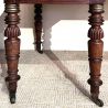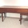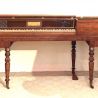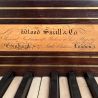 Five octaves of ebony and ivory keys; above the keys the maker's name is drawn onto a satinwood panel and there are two squares of brass stringing; also two panels of fretwork to let the sound out if the lid is closed. There are two drawers for music.