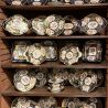 The condition is generally good: one shape has a crack across the base, but not on the rim and there is some faint yellowing on some of the pieces.